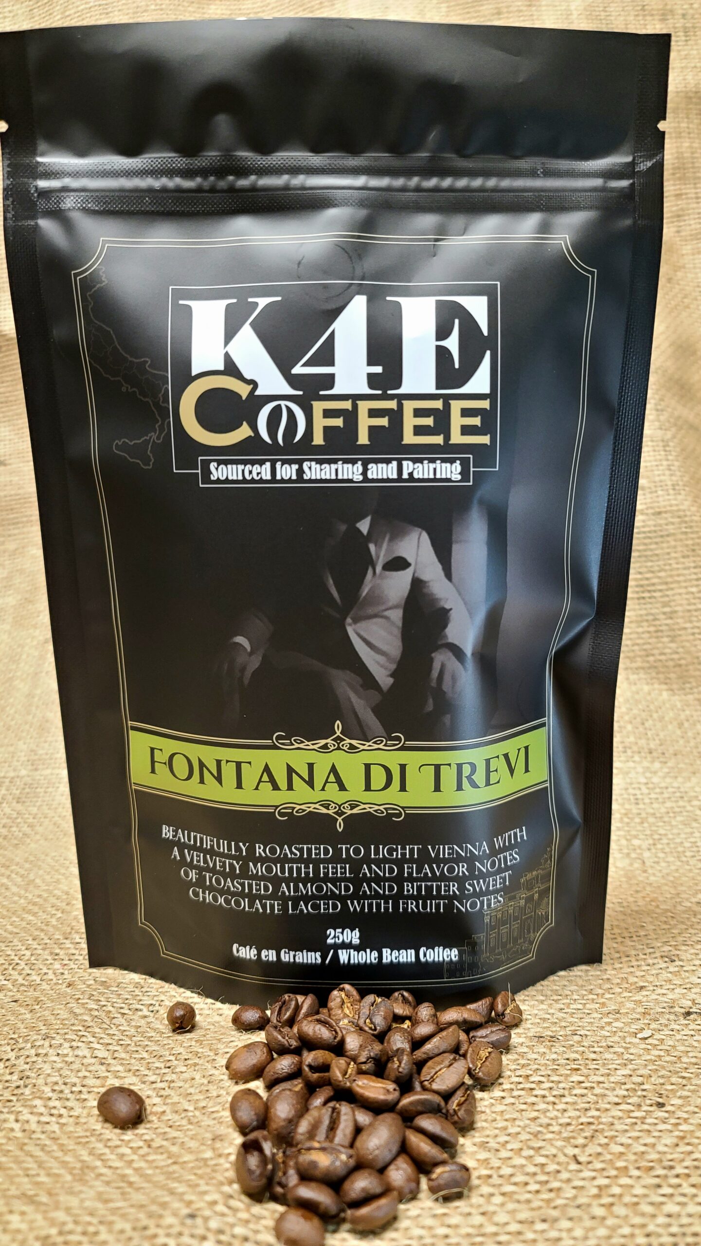 FONTANA DI TREVI (Dark Roast) Complex body with outstanding citrus notes, tastes of toasted almond bitter sweet chocolate laced with fruit.